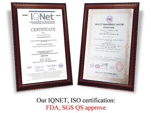 We are certified to ISO9000, ISO14000 and QS standards. And prioritize quality production in safe and sustainably responsible environment. We will create the best flexible packaging, and supply the best quality products and superior services to you.