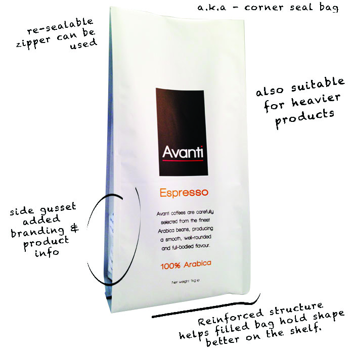 Traditionally used for coffee and tea, this side-gusseted bag is now growing in popularity in the food, snack and baked good industries. Its side-gusset feature allows your package to be displayed vertically or horizontally, giving retailers more options for shelf display. With sizes ranging from 2 oz. to 40 lbs., finding the right size bag has never been easier. These bags are available in many vibrant colors including our popular Aroma Pattern and now also come in matte finish.